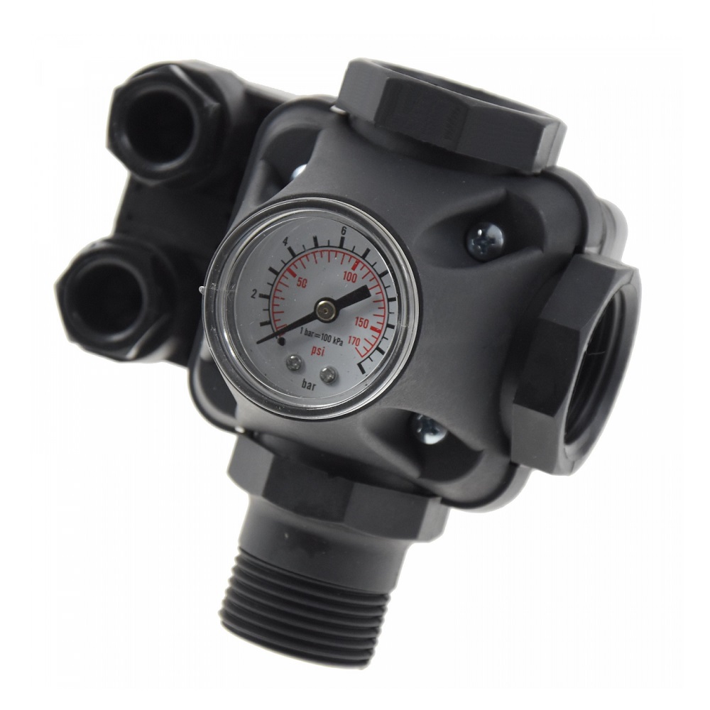 IBO РС-2 - це механічна автоматика, призначена для регулювання вихідного тиску в насосних станціях. Особливістю автоматики РС-2 є наявність намометра, автоматики та п'ятирника в одному суцільному корпусі, що забезпечує надійність та практичність перед окремим комплектом з'єднання, та здешевлює вартість виробу, економить час для монтажу. Автоматика працює в діапазоні від 1-5 бар, заводські параметри 1,4-2,8 бар. Рекомендований тиск не більше 6 бар. Навантаження - 16 А. Діаметр з'єднання 1".