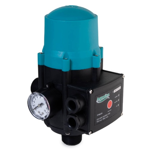 Aquatica 779535 - електронне реле автоматизації водопостачання із захистом насоса від сухого ходу. Особливості: Плавне включення та виключення електронасоса, що зменшує ймовірність гідроудару в системі водопостачання; Захист від «сухого ходу» - після того як припиниться надходження води на всмоктуючій магістралі (аварійний витік, закінчилася вода в свердловині і т.д.) контролер через 8 - 10 секунд зробить зупинку електронасоса; Автоматичний перезапуск - після спрацьовування захисту від "сухого ходу" контролер здійснює короткочасні включення електронасоса до появи води у всмоктувальній магістралі; Запускається автоматично після вимкнення електроживлення; Можливе регулювання тиску включення. Характеристики: Діапазон налаштувань: 1-5 бар; Заводські настройки розмикання: 3.5 бар; Потужність комутації: 1.1кВт; Макс. сила струму: 10А; Комутований струм: 220В, 50Гц; Діаметр: 1 ''; Манометр: є; Зворотний клапан: є. Оснащений функцією перезапуску.