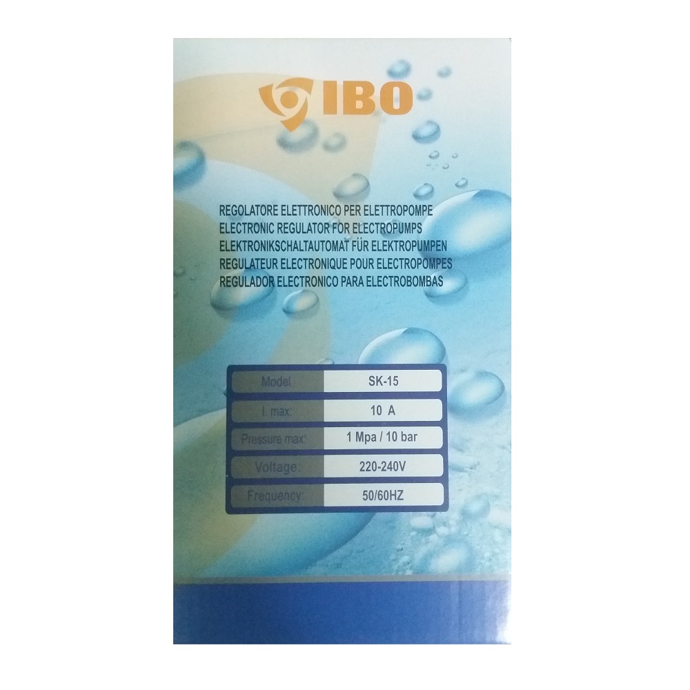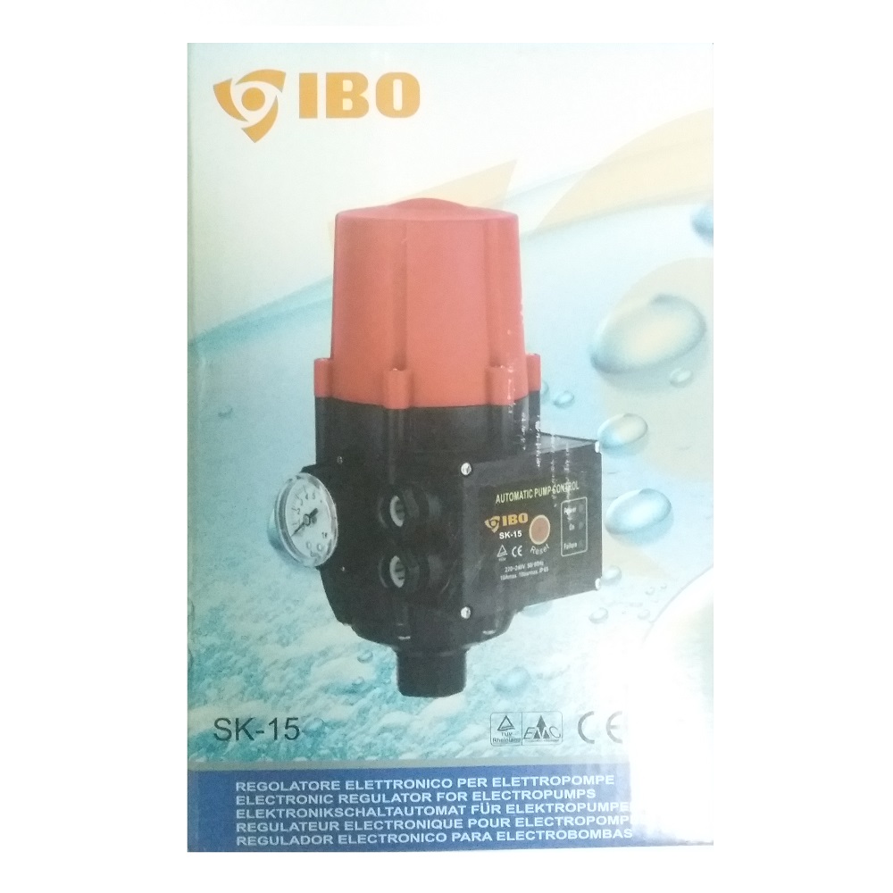 IBO SK-15 - це автоматика для управління водяним насосом, яка працює по принципу: відкрили кран - автоматика запустила насос, закрили кран - автоматика вимкнула насос. Працює по електромеханічному принципу, це дає змогу тримати постійний тиск на відкритий кран, що забезпечує комфортне користування водою без перепадів тиску. Заданий робочий тиск 4,5 Бар. Має захист від сухого ходу, в разі закінчення води насос про працює 10-12 секунд і автоматика його вимкне. Це збереже насос від перегріву та не дасть зруйнуватися сальнику. Оснащена манометром, та має функцію перезапуску. Допустиме навантаження 1,1 кВт або 10 А, максимальний робочий тиск 10 Бар. Дана автоматика не має регулювання вихідного тиску! Країна виробник - Польща.