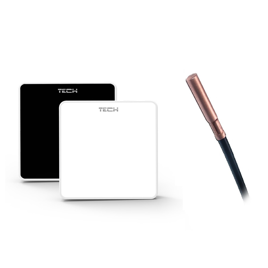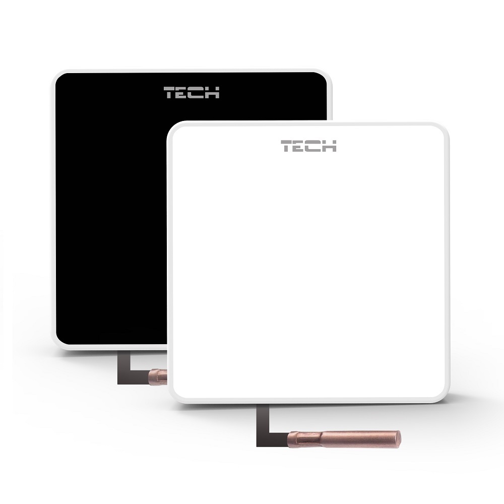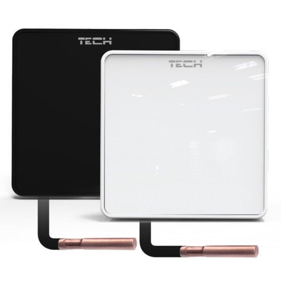 Tech ST-C-8f- Це безпровідний, кімнатний датчик температури (повітря кімнати) та виносний датчик для підлоги (температура теплої підлоги), призначений для роботи з контролером L-8. Зчитує фактичну температуру кімнати та теплої підлоги за допомогою виносного температурного датчика. Принцип роботи такий: даний датчик зчитує температуру теплоносія теплої підлоги щоб та неперевищувала допустимих 50°C і згідно кривої передає на блок керування. По цих даних блок керування згідно кривої відкриває або закриває термостатичний клапан, що дає змогу контролювати точну температуру в кімнаті, і цим економити витрати на опалення. Чим ближча температура до заданої тим нижче значення температури теплої підлоги.