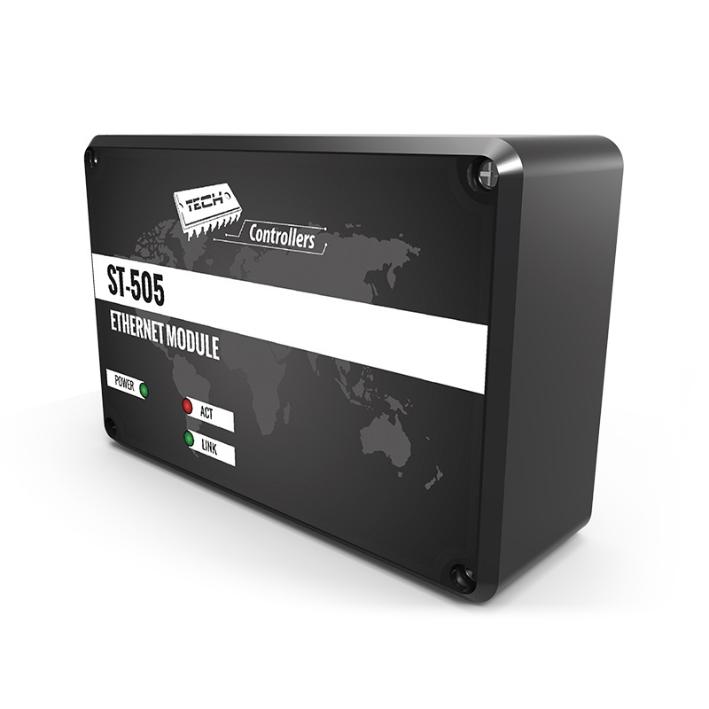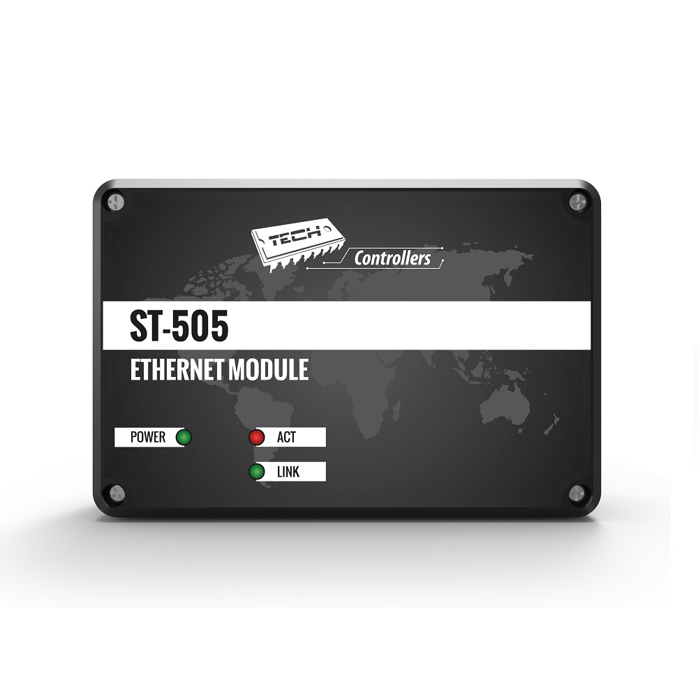 TECH ST-505 Internet - Це якісний модуль керування котла через інтернет або локальну мережу. Модуль дозволяє дистанційно керувари роботою котла, усіма його приладами та переглядати температуру датчиків за допомогою комп’ютера. Крім можливості перегляду температури кожного датчику користувач має можливість ввести зміни температур як для насосів, так і для змішувальних клапанів і на кімнатному регуляторі.