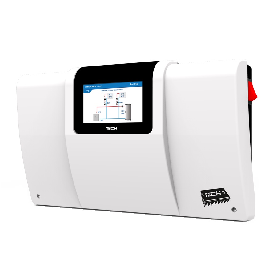 TECH EU-I-2 - Це багатофункціональний пульт керування, призначений для управління системою опалення. Основними його функціями є можливість керування двома змішувальними клапанами, підключення одночасно двох джерел тепла, наприклад твердопаливний і газовий котли і можливість підключення додаткового обладняння, наприклад гаражні ворота, освітлення або зрошення газону. Всі регулятори оснащені зручним великим LCD сенсорним екраном з діагоналлю 4,3" і мають роз'єм USB для оновлення програмного забезпечення.