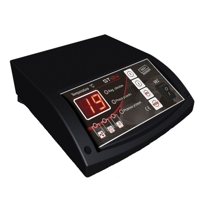Tech ST-24 SIGMA - Це пульт управління до твердопаливного котла, який керує вентилятором та циркуляційним насосом. Має функцію ручного та автоматичного управління. Головним завданням даної автоматики є контроль температури теплоносія в твердопаливному котлі в певному діапазоні. Контроль відбувається шляхом дозування подачі повітря. Автоматика контролює оберти вентилятора, цим самим контролює кількісний потік повітря в котел. Керує насосом ценрального опалення, де в свою чергу є функції антистоп та антизамерзання. Оснащена датчиком перегріву, корпус контроллера пристосований для безпосередньої установки на котел. Має функцію SIGMA, плавне керування обертами ветилятора.