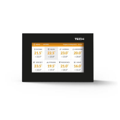 Сама панель керування не є обов'язковим комплектуючим, але є рекомендованою. Основною, її задачею є комфортне та просте управління температурою у Вашому будинку. Оснащений великим кольоровим дисплеєм, на який можна завантажувати власні фото, для слайд шоу або заставки, можливість встановлювати час та дату, будильник, вмонтований датчик температури, регулювання яркості екрану. Ну і звичайно змінювати налаштування параметрів контурів опалення.