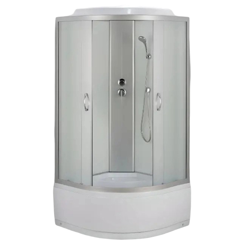 Модель виконана у сучасному стилі: загартоване скло кольору "Графіт" (сіре) гармонійно поєднується з сатиновим алюмінієвим профілем. Гідробокс повністю закритий, що запобігає потраплянню вологи та пари на стіни ванної кімнати.