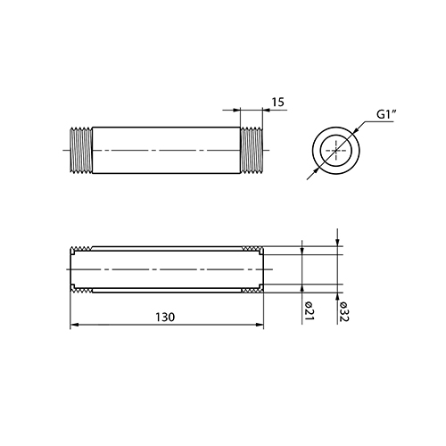 Подовжувач довжиною 130 мм із зовнішньою різьбою 1". Використовується для комплектації насосних груп DN20.