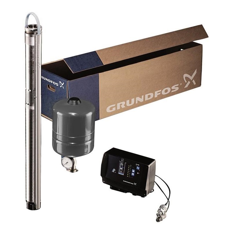 Глибинний насос з пакетом постійного тиску GRUNDFOS SQE 3-65 96524501, потужністю 1,1кВт використовується для забезпечення безперервного водопостачання як для житлових будинків, так і для котеджів, а також для перекачування води з резервуарів, зрошувальних систем і водопровідних станцій. Модуль управління CU 301 спеціально спроектований для свердловинних насосів SQE. Даний прилад здійснює контроль постійного тиску на підставі сигналів, отриманих від датчика, вводить відповідні значення тиску гідросистеми і контролює стан робочої і аварійної індикації.