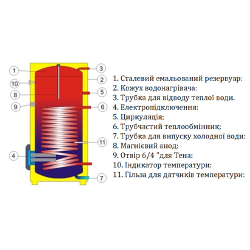 ●Внутрішня поверхня бака покрита високоякісною емаллю без вмісту нікелю, що в поєднанні із захисним магнієвим анодом забезпечує довговічність роботи водонагрівача.