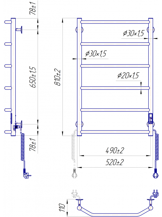 Електрична рушникосушарка Трапеція HP-I 800x520 TR K з регулятором часу і температурою нагріву. Регулювання температури в трьох режимах: 40°С, 45°С, 50°С (±5°С). Рушникосушарка Трапеція HP-I заводу-виробника Маріо, висотою 810 мм, шириною 520 мм. Номінальна потужність 105 W. Обладнана таймером, який дозволяє встановити час нагрівання на 3 і 6 годин, або переключити режим роботи на постійний нагрів. Обладнана коннектором - дозволяє підключати сушку до електромережі як справа, так і зліва. Рушникосушарка з коннектором повністю сумісна з комплектом прихованого монтажу.