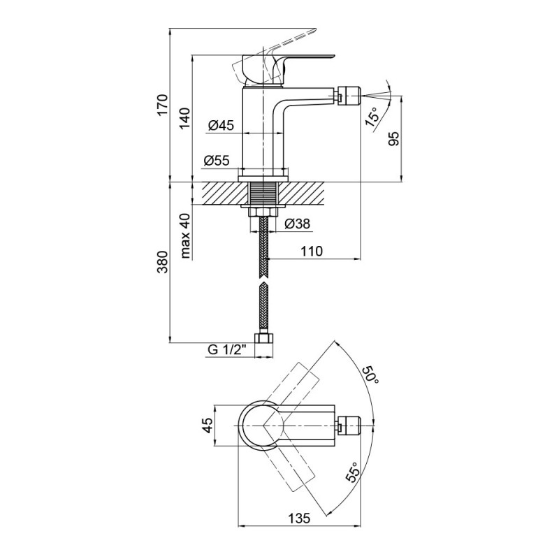 Змішувач для біде Ustek, латунь + хром, Q-tap
