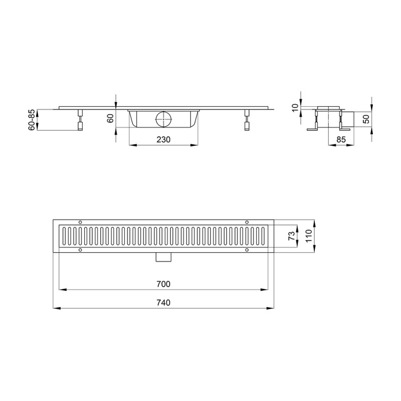 Трап лінійний з решіткою Dry FA304-700MBLA QT (сухий затвор)