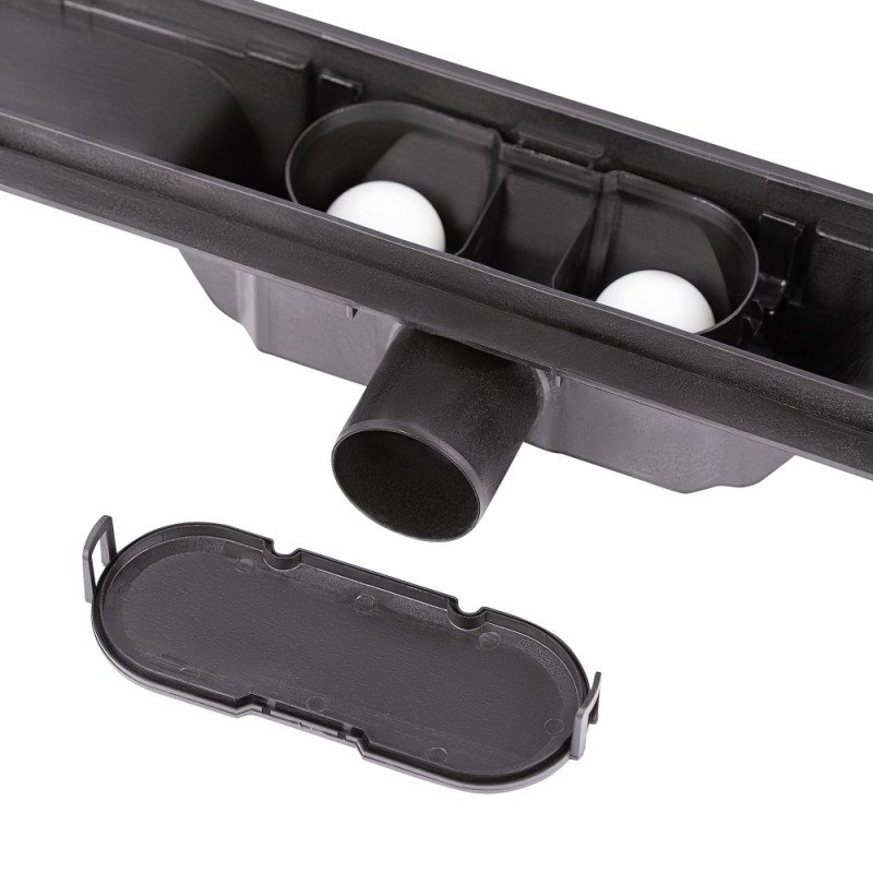 Трап лінійний з решіткою Dry, р.700мм, решітка нерж/сталь, (сухий затвор), чорний, Q-tap