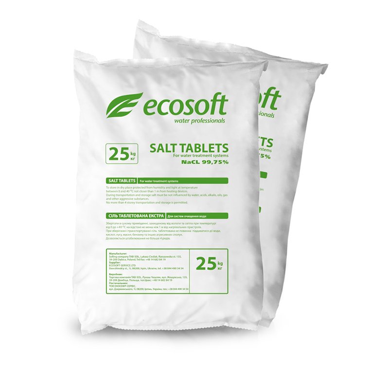 Таблетована сіль Ecosoft Ecosil призначена для регенерації іонообмінних смол Ecomix та Dowex, які використовуються в якості фільтруючого матеріалу в усіх фільтрах знезалізнення та пом'якшення води Ecosoft FK та фільтрах пом'якшення води Ecosoft FU.