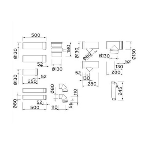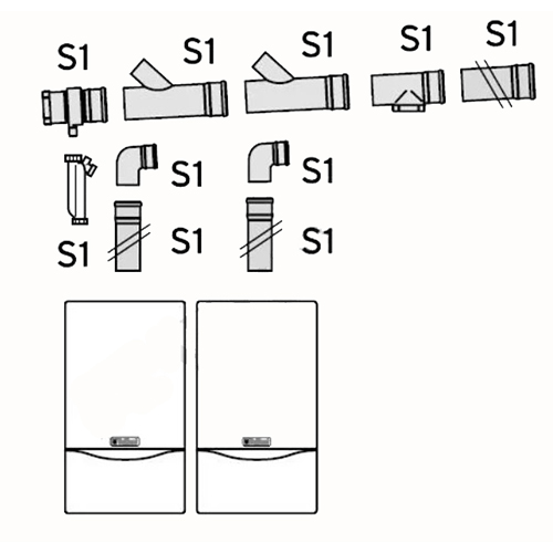 Базовий комплект S1 димоходу для каскадного підключення 2-х котлів РР Ду 130