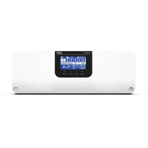 Панель управления EU-ML-12 является частью системы управления отоплением, позволяющей расширить монтаж дополнительными зонами. Он имеет проводную связь RS 485 и беспроводную связь. Основная функция – поддерживать определенную температуру в каждой зоне. EU-ML-12 Это устройство, которое вместе со всеми периферийными устройствами, такими как: комнатные датчики, комнатные регуляторы, напольные датчики, внешний датчик, оконные датчики, термостатические приводы, усилители сигналов, создают всю интегрированную систему.