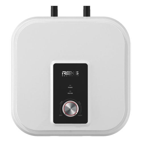 Электрический водонагреватель RENS с квадратным корпусом обеспечивает надежное горячее водоснабжение. Оснащен мокрым ТЭНом. Работает при номинальном напряжении 220-240 В и частоте 50/60 Гц. Номинальное давление составляет 0,75 МПа. Класс защиты от поражения электрическим током – И. Водонагреватель предназначен для вертикального монтажа: над и под мойкой.