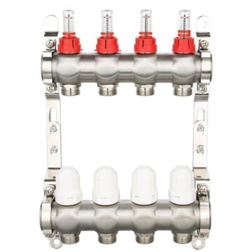 Коллекторы с расходомерами используются для распределения потоков теплоносителя по контурам теплого пола.