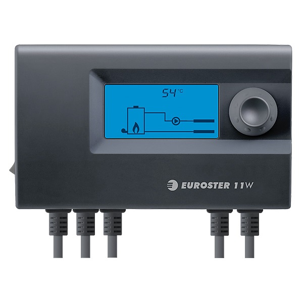 Euroster 11W – это современный контроллер, предназначенный для твердотопливного котла регулирующий температуру воды в системе отопления, что позволяет избежать лишнего перерасхода топлива и добиться комфортной температуры в доме. Регулировка осуществляется путём управления вентилятором (нагнетание воздуха в топку). Также блок управления контролирует работу циркуляционного насоса. Блок управления 11W оснащен LCD дисплеем и имеет много разных настроек – от отдельных гистерезисов на вентилятор и насос ц.о, времени продувки и перерыва между продувками, до корректировки показаний температуры. С этим оборудованием Вы легко добьетесь уменьшения расхода топлива и более длительной работы