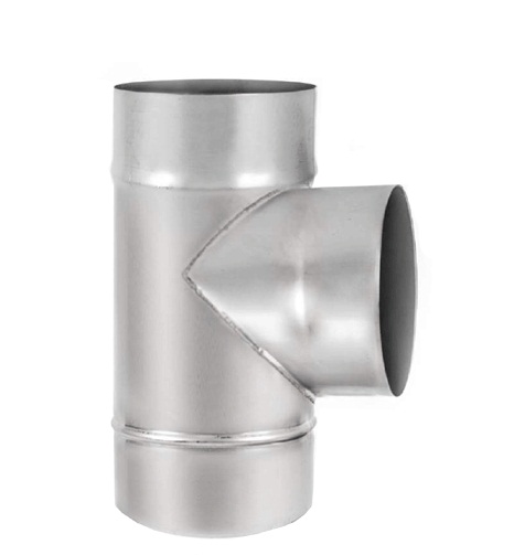 Тройник предназначен для отвода отходящих газов в дымоход и обеспечивает возможность чистки и обслуживания дымоходной трубы, изготовленный из нержавеющей стали марки AISI 304, толщиной 0,8мм.