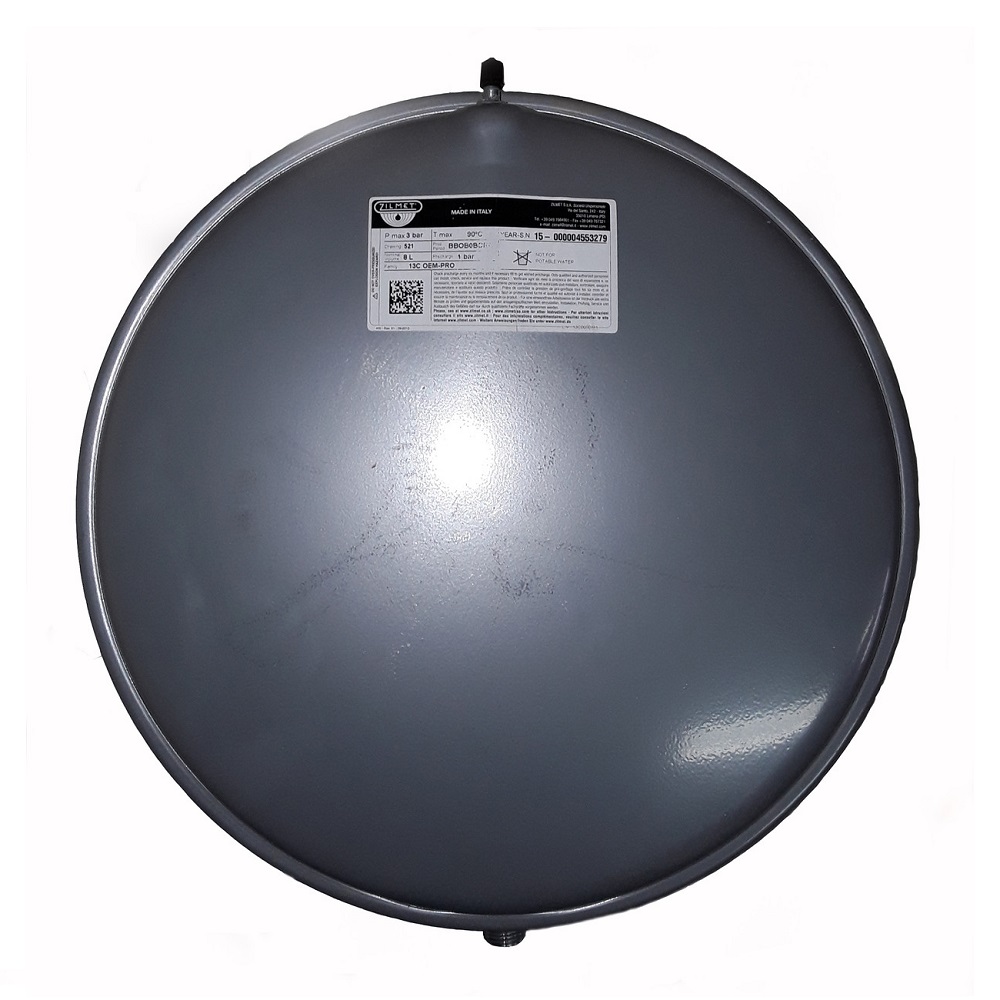 Расширительные мембранные баки ZILMET OEM-PRO предназначены для компенсации объемных изменений теплоносителя, происходящих вследствие нагревания или охлаждения, применяются в системах отопления, кондиционирования, холодильных установках. Изготовлены из высококачественной листовой стали, внутренняя полость разделена фиксированной мембраной из синтетического каучука SBR на две камеры: водяную и воздушную. Со стороны воздушной камеры в корпусе мембранного бака размещается пневмоклапан, предназначенный для регулировки давления воздуха. Поступление и выход воды из расширительного мембранного бака производится через резьбовой присоединительный патрубок. Расширительные мембранные баки OEM-PRO выпускаются объемом от 2 до 24 литров.
