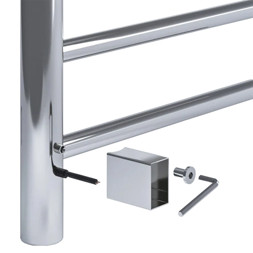 Данный вид скрытого подключения применяется к полотенцесушителям, стойки которых имеют круглое сечение трубы.